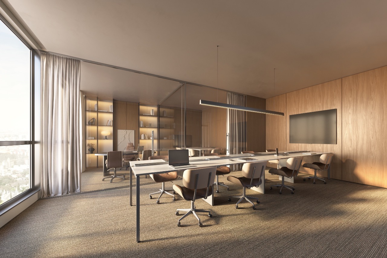 - Salas comerciais de 30m² a 55m² privativos em plantas flexíveis para públicos exigentes